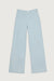 Long length. Mid-rise elasticated waist at the back. Full zip and button front closure.