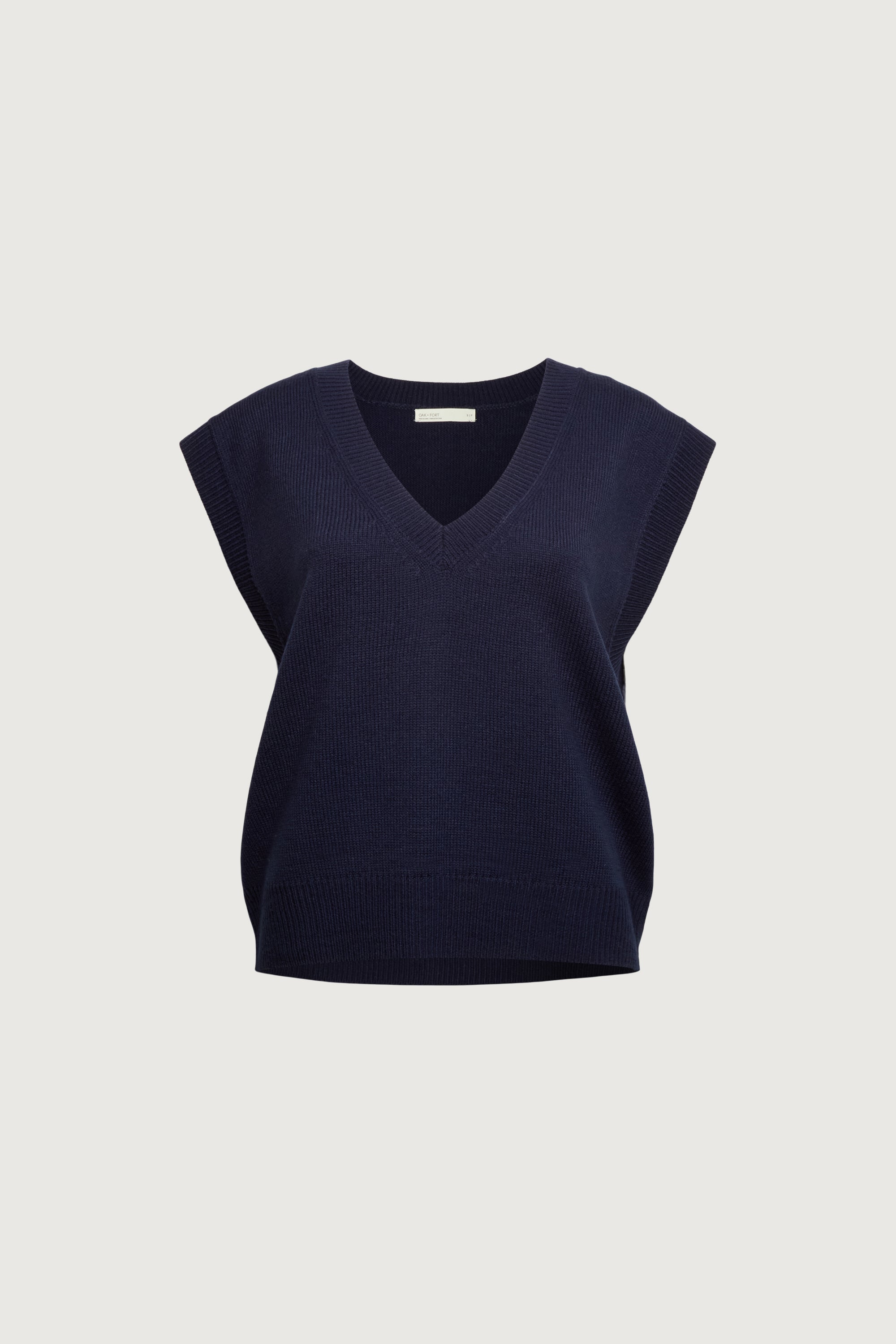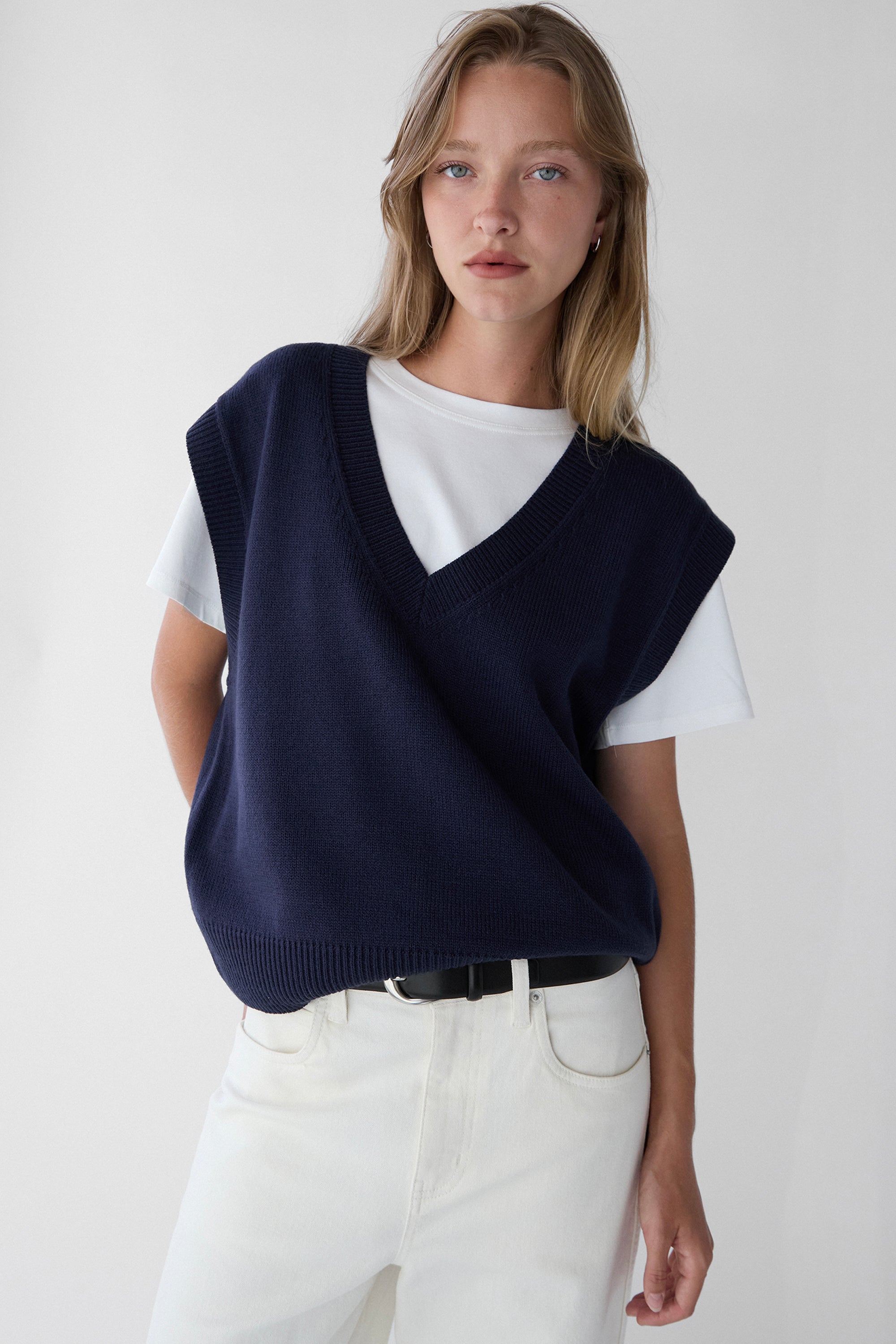 This V-neck knit vest is made from mid-weight jersey knit in a relaxed fit. It features ribbed trims for added detail. The perfect transitional piece for your wardrobe, layer yours over long sleeve tops or basic tees.