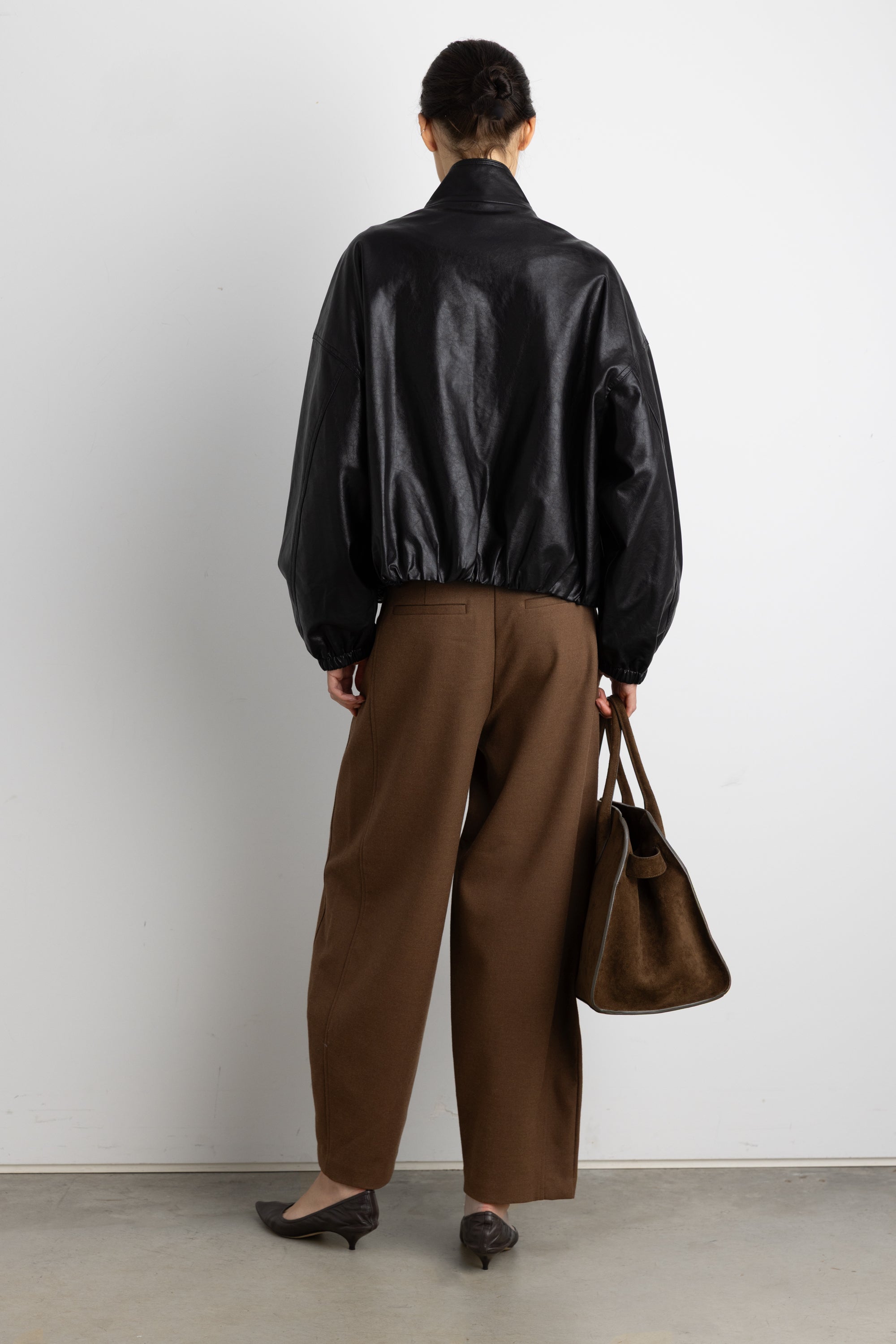 VEGAN LEATHER FUNNEL NECK BOMBER JACKET