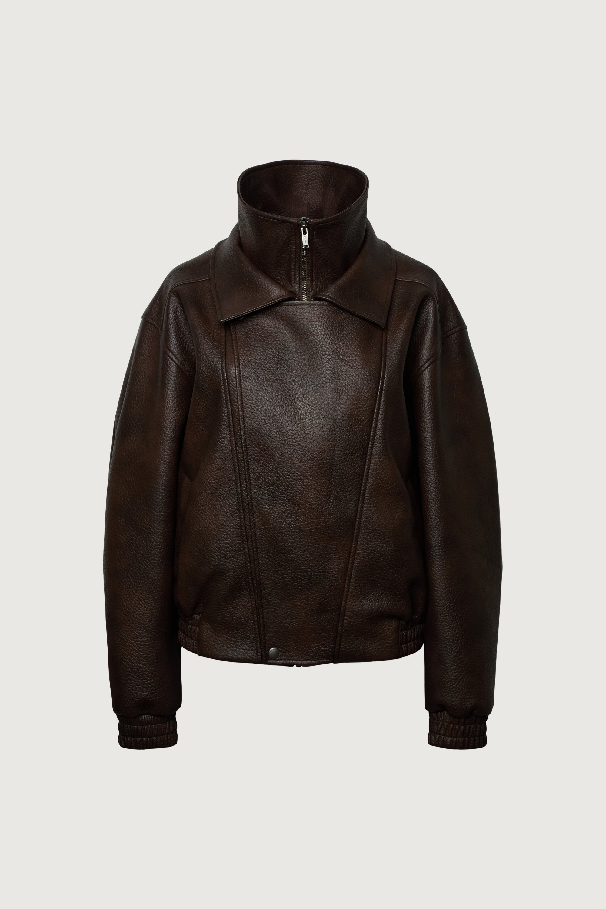 VEGAN LEATHER DOUBLE COLLAR BIKER JACKET