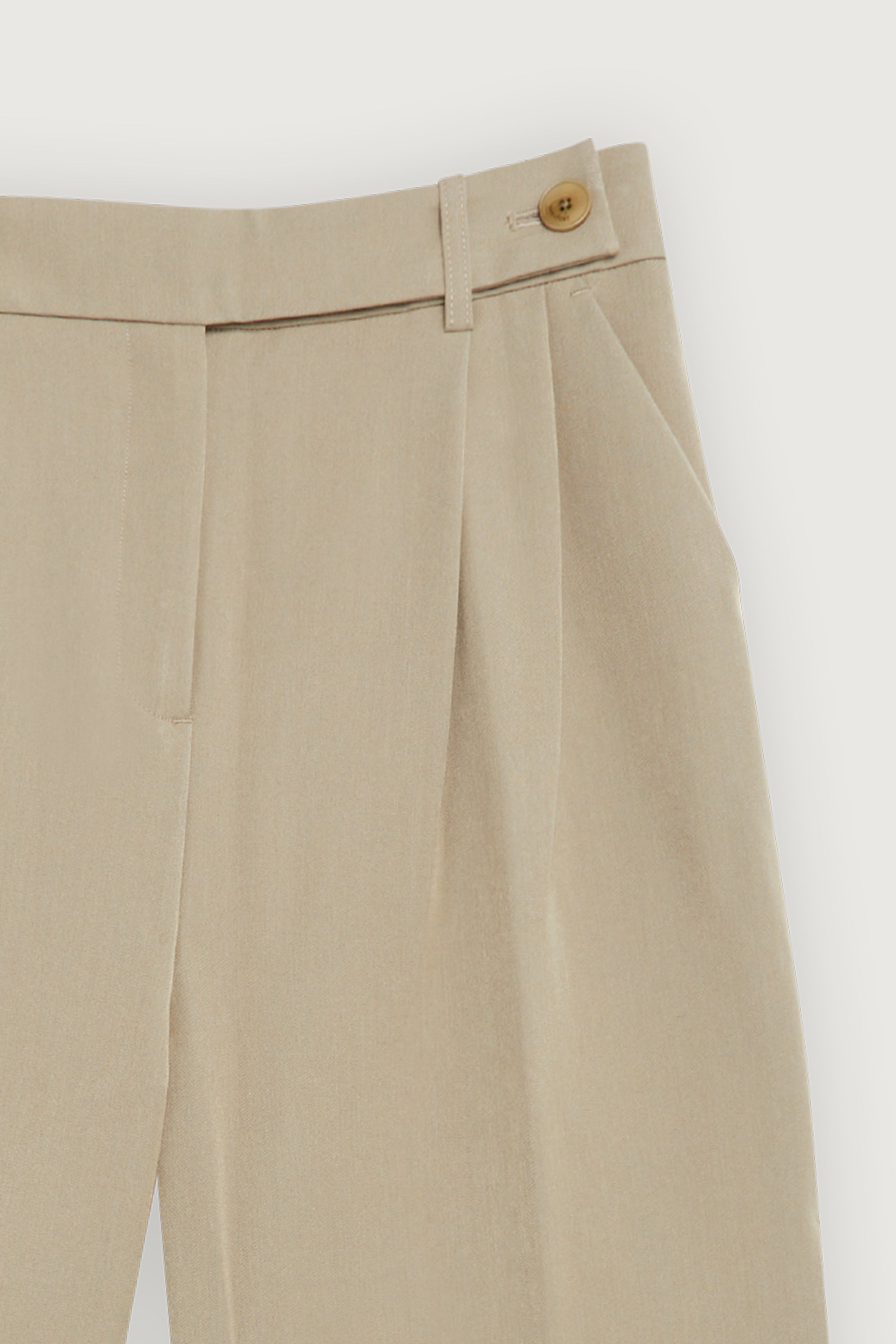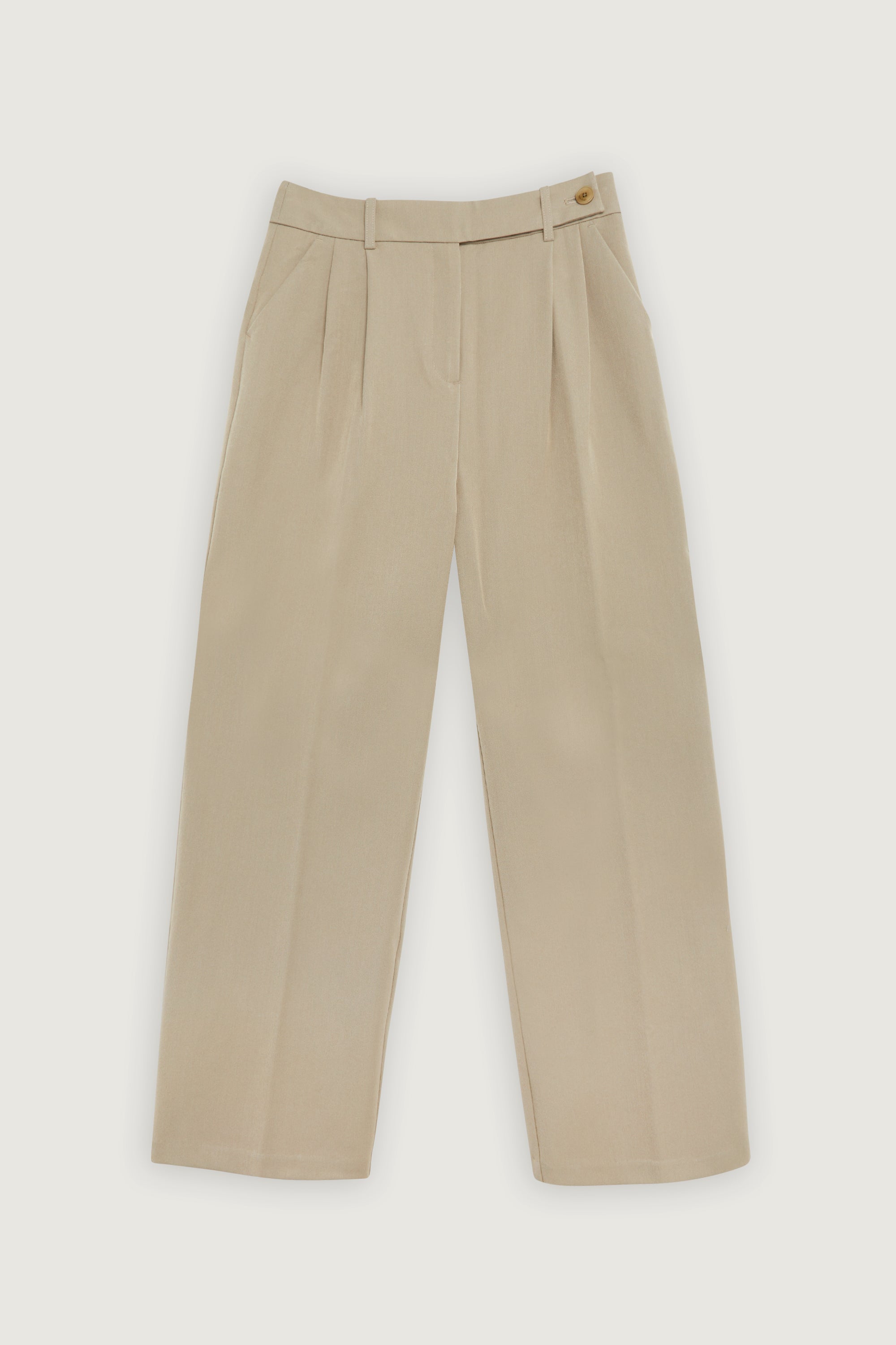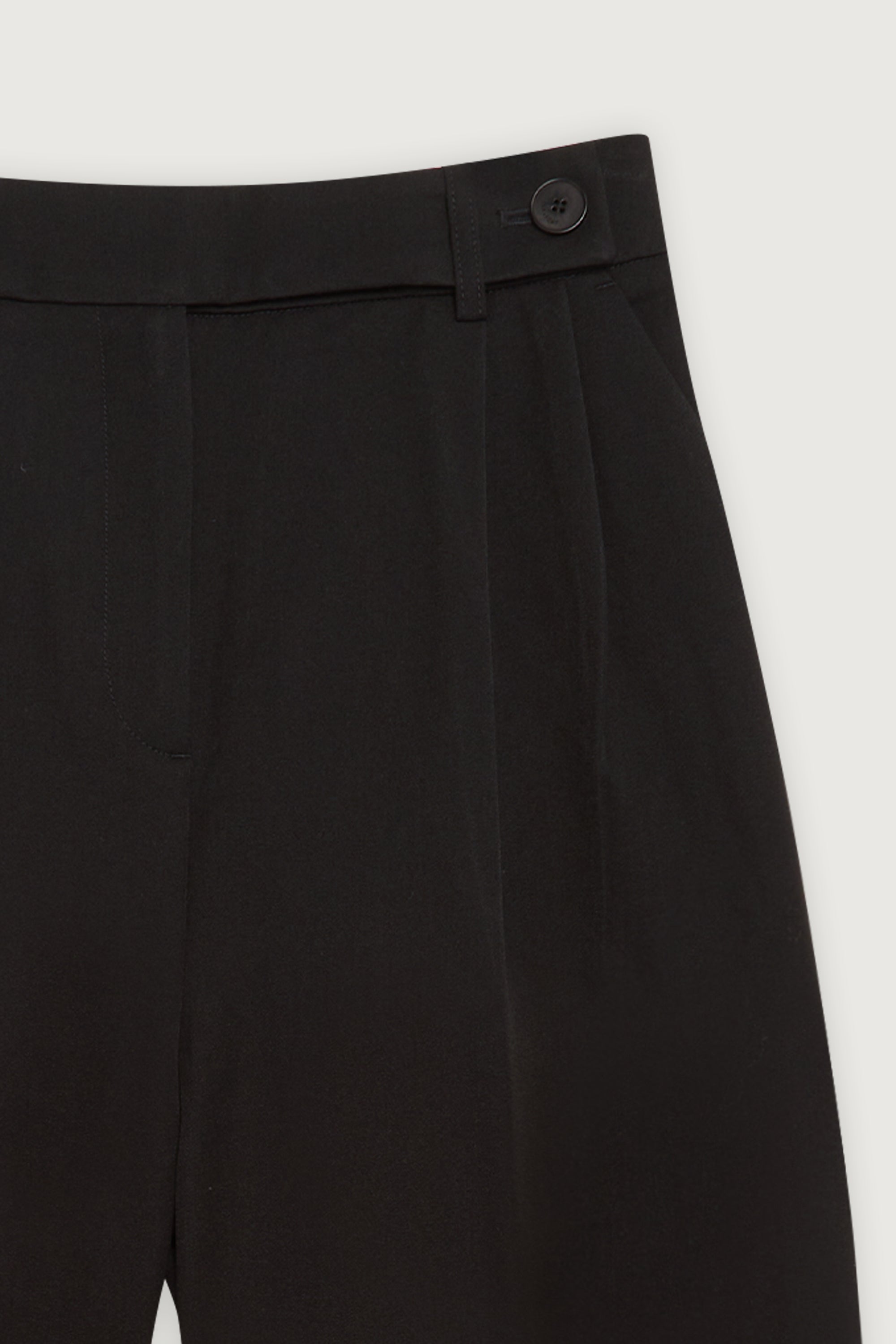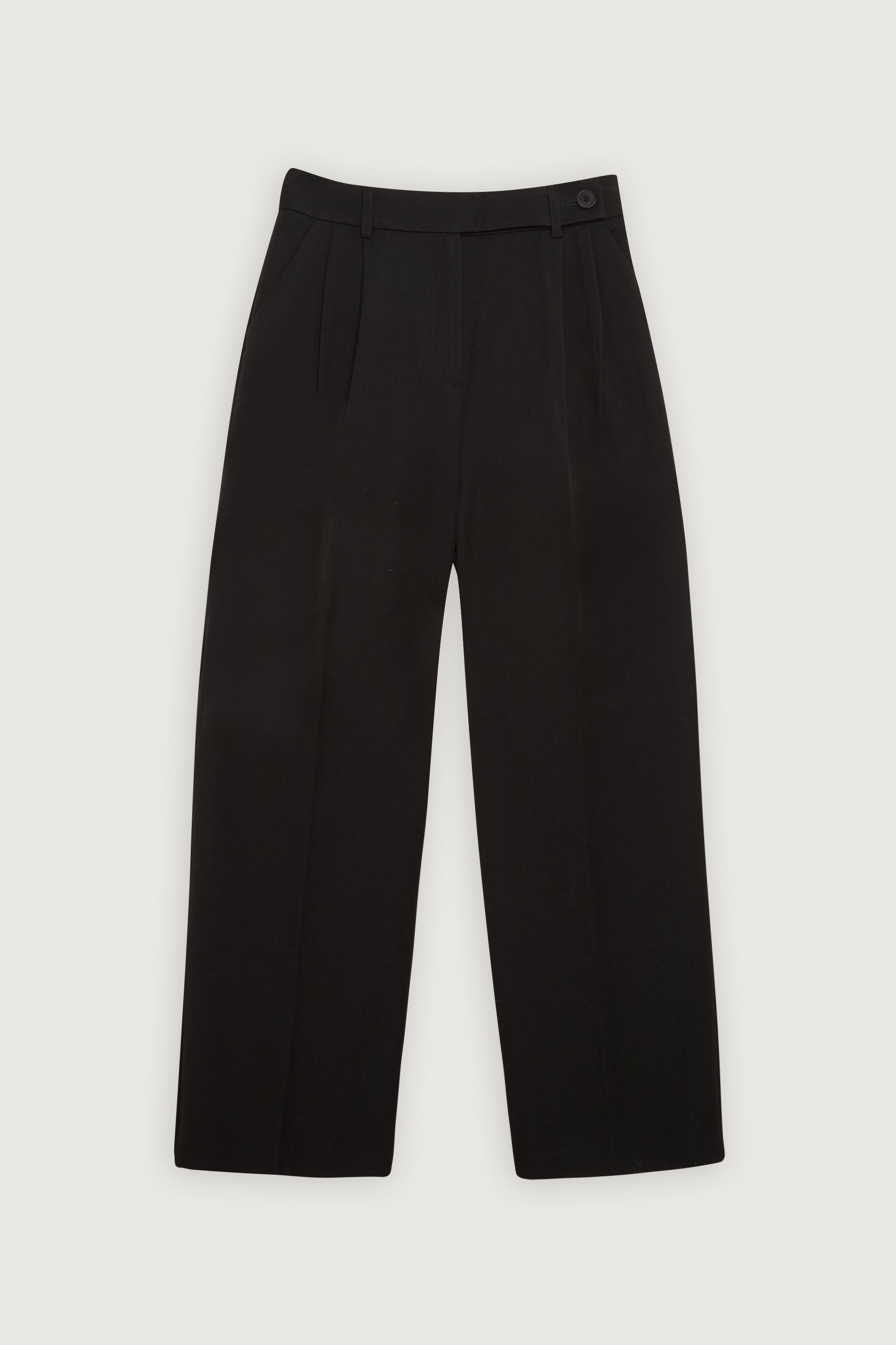 - Relaxed fit. Wide leg cut. High-rise waist. Front pleats. Side pockets.